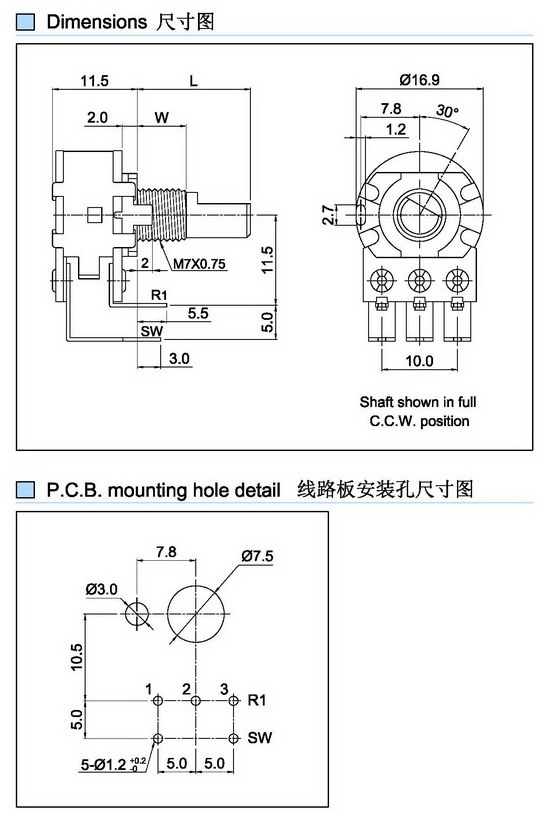 16mm开关电位器