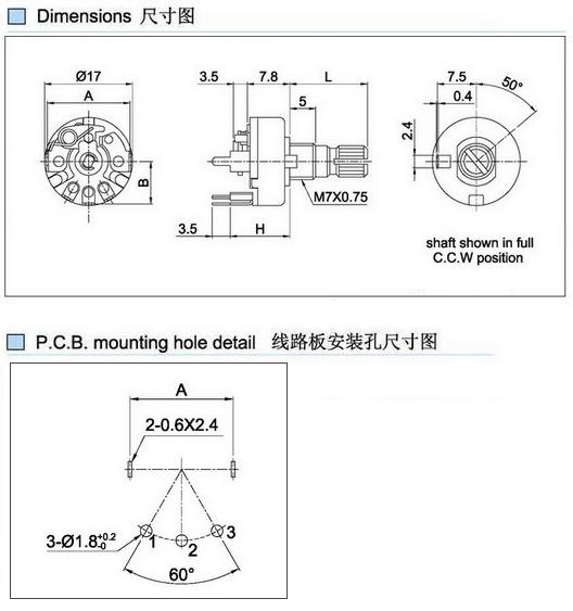 17mm开关电位器 分辨率高、阻值范围宽;噪声小、耐热耐湿性良好。 品种多样:普通合成碳膜电位器、带开关小型合成碳膜电位器、单联带开关(无开关)电位器、双联同轴无开关(带...