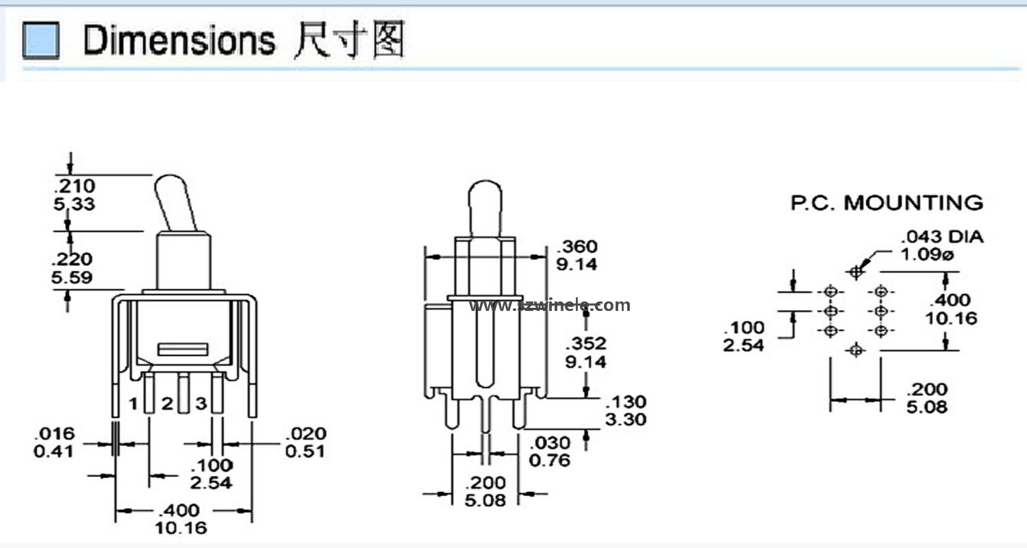 额定值:250VAC / 2A 125V / 5A 介电强度:1500VAC 50HZ 绝缘电阻:100M 接触电阻:0.02 寿命:10000次以上 主体材料:ABS 手柄:镀镍铜 端子:铜镀银或金色 开关功能...