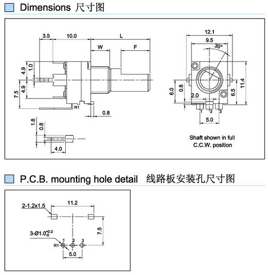 9mm金属轴电位器 分辨率高、阻值范围宽;噪声小、耐热耐湿性良好。 品种多样:普通合成碳膜电位器、带开关小型合成碳膜电位器、单联带开关(无开关)电位器、双联同轴无开关(...