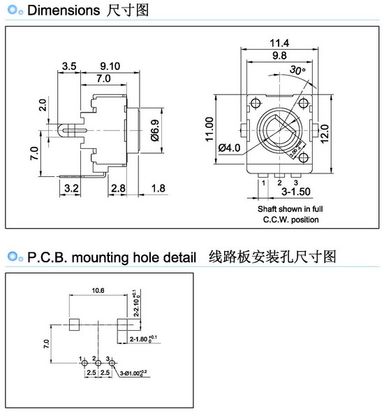 9mm 绝缘轴电位器 分辨率高、阻值范围宽;噪声小、耐热耐湿性良好。 品种多样:普通合成碳膜电位器、带开关小型合成碳膜电位器、单联带开关(无开关)电位器、双联同轴无开关(...