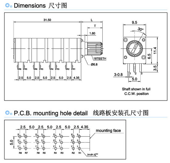 9mm绝缘轴密封电位器