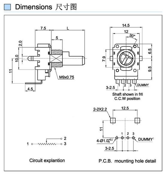Rotary Potentiometer Rating:0.05W Contact Resistance:50m max InsulationResistance:500V DC- 100K min Withstand Voltage:500V AC 1 minute Operating Force:20-200gf.cm Life Cycle:15000 cycles min...