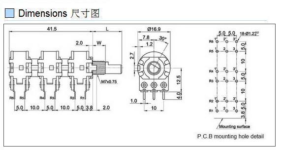 Rotary Potentiometer Rating:0.05W Contact Resistance:50m max InsulationResistance:500V DC- 100K min Withstand Voltage:500V AC 1 minute Operating Force:20-200gf.cm Life Cycle:15000 cycles min...