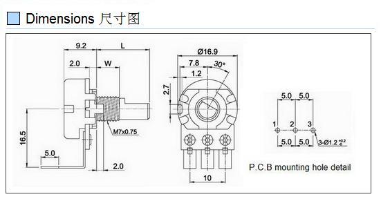 Rotary Potentiometer Rating:0.05W Contact Resistance:50m max InsulationResistance:500V DC- 100K min Withstand Voltage:500V AC 1 minute Operating Force:20-200gf.cm Life Cycle:15000 cycles min...