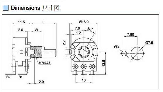 16mm Rotary Potentiometer Rating : 0.1W Contact Resistance: 50m max Insulation Resistance:500V DC- 100M min Withstand Voltage:500V AC 1 minute Operating Force:20-200gf.cm Life Cycle:15000 cycles min...