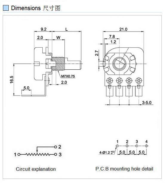 16mm volume control rotary potentiometer Rating : 0.1W Contact Resistance: 50m max Insulation Resistance:500V DC- 100M min Withstand Voltage:500V AC 1 minute Operating Force:20-200gf.cm Life Cycle:15000 cycles min...