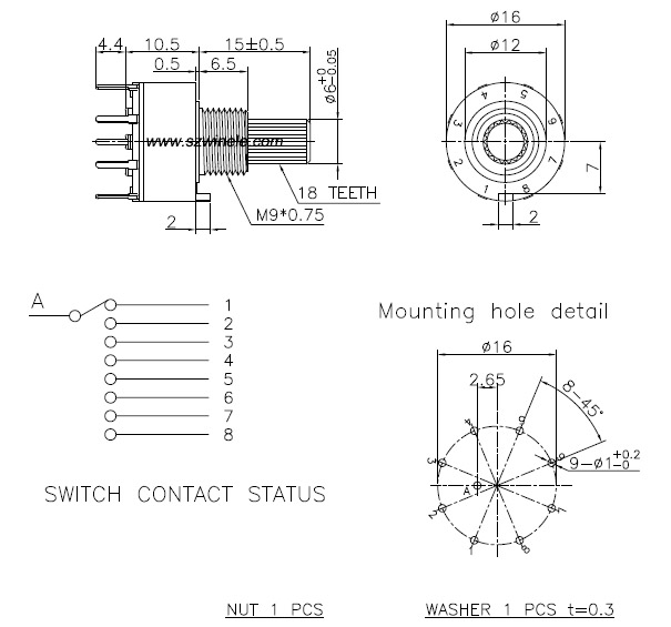 • Optional 1P3T 1P6T 1P8T 1P24T 2P6T 3P4T 4P3T etc.multi-position rotary switch