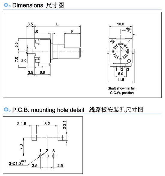 Rotary Potentiometer Rating:0.03W Contact Resistance:50m max Insulation Resistance:250V DC- 100K min Withstand Voltage:250V AC 1 minute Operating Force:10-100gf.cm Life Cycle:10000 cycles min...